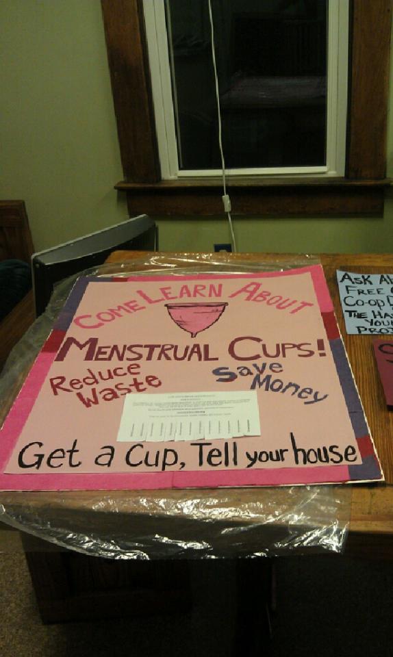 Thanks to Julia and Lou from the Keeper, I had 30 Mooncups and Keepers to give away to representatives from over twenty different houses, and I talked to many more people than that! I encouraged everyone who got a cup to go back to their houses and speak about sustainable menstruation loud, clear, and unabashedly. Many of the giftees from the conference are now working on getting our article about sustainable menstruation published in their co-op or school newsletters. Check out the NASCO Tumbler video from my booth at the conference. This felt like and incredibly effective place to “plant seeds” and give away cups. I look forward to hearing the report-backs!