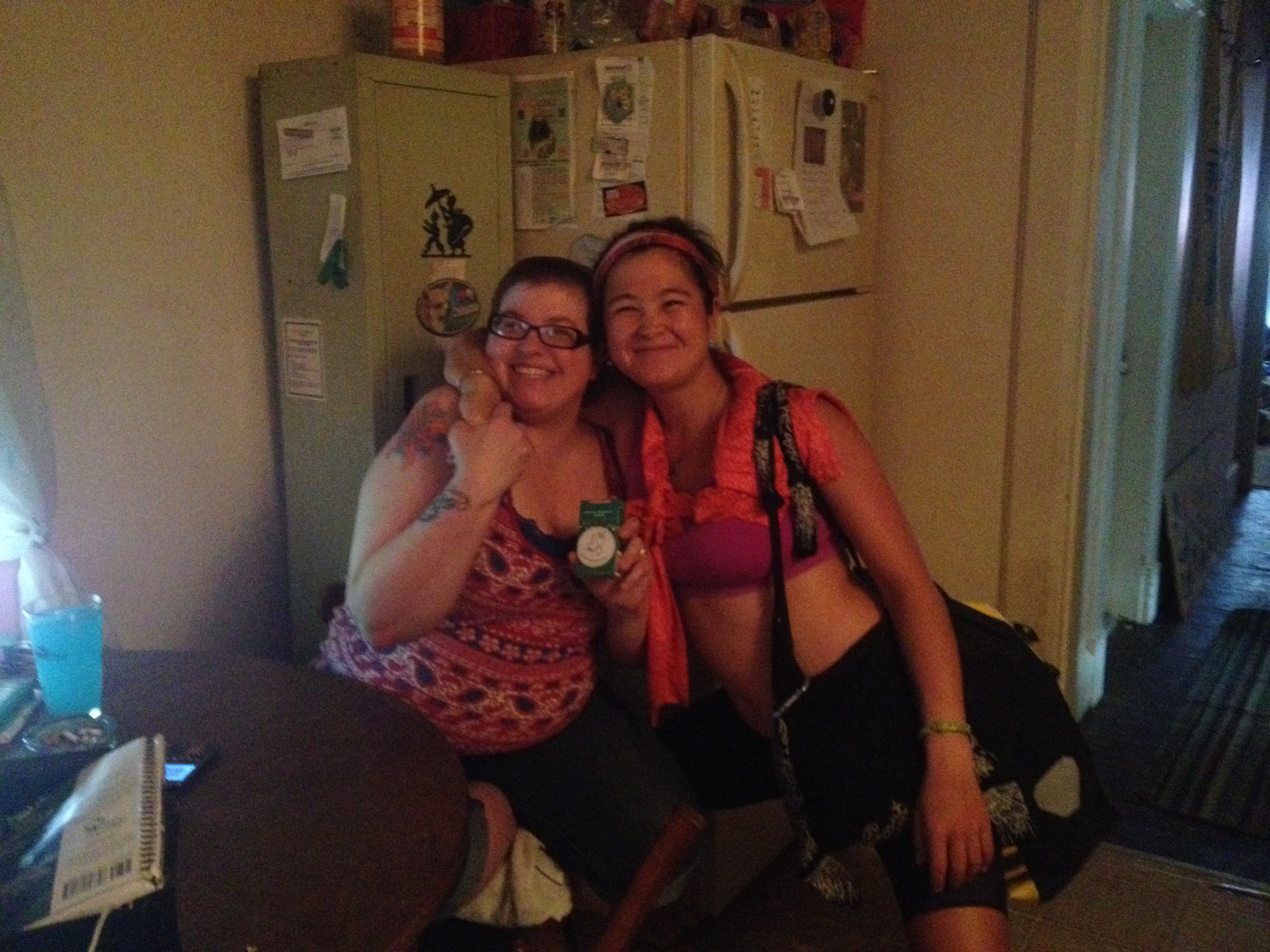 Jenn Liese is Mama. This woman is one of those angel people. She has over 40 foster children out there in the world, and despite having at least 9 of her kids (age 18+) sleeping in her 3 bed, 1 bath apartment, she took Owen and me in. As much spaghetti as we could eat, shower to scrub the bridge grime off, a whole room to ourselves, and plenty of kids to hang out with! And she also adopted us into her family. What’s amazing about her is that she doesn’t kick out her foster kids once they turn 18 and the check stops rolling in. She still loves them, feeds them, transports them, shelters them, etc, etc. Despite there being only 3 women in the house, and much to the boys’ shagrin, we had menstrual cup talk anyway! One daughter now has a cup to try.