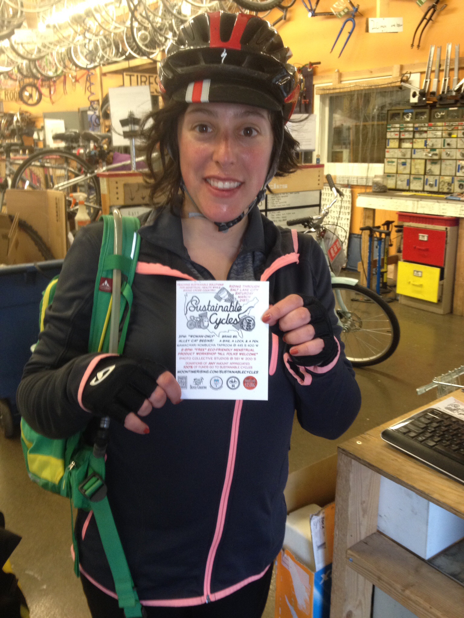 Ruby and Sarah are happy to report they have made it to their 4th state, Colorado! The West has treated us well and we continue to meet inspiring women everywhere we go. Salt Lake City greeted us with open arms, and lucky us, we rolled into the Bicycle Collective on Women’s Night! The Bicycle Collective also hosted an all-women’s alleycat race leading up to our event! It was great meeting more strong and bike-friendly women, and being hosted by our lady bike pal Alex from NYC. We got to take a few days off, see the city, and soak in Alex’s antique bathtub! We had an inspiring workshop with our new friend Giuliana Serena of Moon Time Rising (http://moontimerising.com) who started us off with a presentation on the history of menstruation and the feminine hygiene industry, and it was great to meet another menstruation enthusiast! We will be seeing her again at the SMCR Conference in June, and are super excited for her workshop on ceremonialism! SLC was also our biggest workshop yet, GO SLC!!!