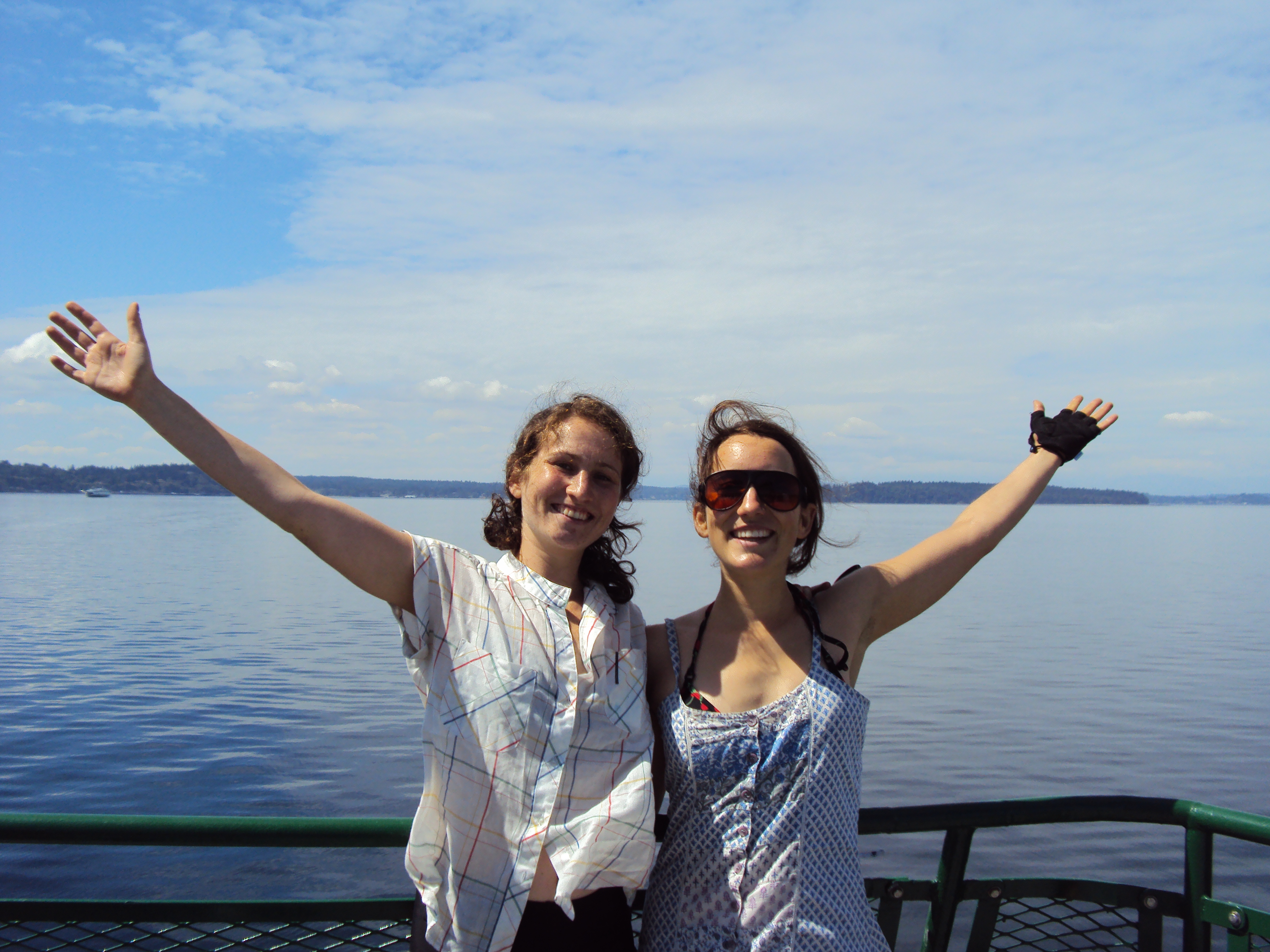 From Bodega Bay, until the San Francisco Bay Area, we decided to take it easy, since Sarah was not feeling well. We hitchhiked to Marin county to stay with Christina, the mother of Lucia, a Humboldt State student we met in Arcata. Christina, Michael, and Martin live in a beautiful home on the water at Bel Marin Keyes. We were feeling like we needed some comfort and coddling, and we sure got it! We went swimming a few times a day, ate delicious food, had access to computers to work on our articles, and even got massages from Christina, a professional massage therapist! Christina saw the massages as a way to “support our bodies,” and therefore support our work. She toured us around the surrounding town where we gave out information and cups at an acupuncture office, a raw foods cafe, and other businesses.